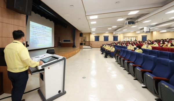 전 직원이 비상소집 후 08시 30분에 시 교육청 대회의실에서 전 직원이 참석해 2022년도 을지연습 최초보고 회의를 실시했다.