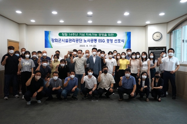 [금요저널] 강화군시설관리공단은 지난 19일 창립 14주년을 맞아 임직원의 의견수렴을 통해 지속가능 경영 실천을 위한 ESG 경영 선언문 채택 및 노사 공동 선포식을 개최했다.