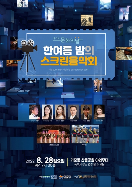 [금요저널] 시흥시가 주최하고 시흥윈드오케스트라가 주관하는 2022 경기도 문화의 날 ‘한 여름 밤의 스크린 음악회’가 오는 28일 오후 7시 30분, 거모동 산들공원 야외무대에서 열린다.