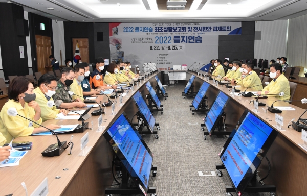 [금요저널] 시흥시가 을지연습 첫날인 지난 22일 임병택 시흥시장 주재로 ‘2022 을지연습 최초상황보고회’를 열고 국가 위기 대응을 위한 전시 행정체제 전환 준비상황을 꼼꼼히 점검했다.