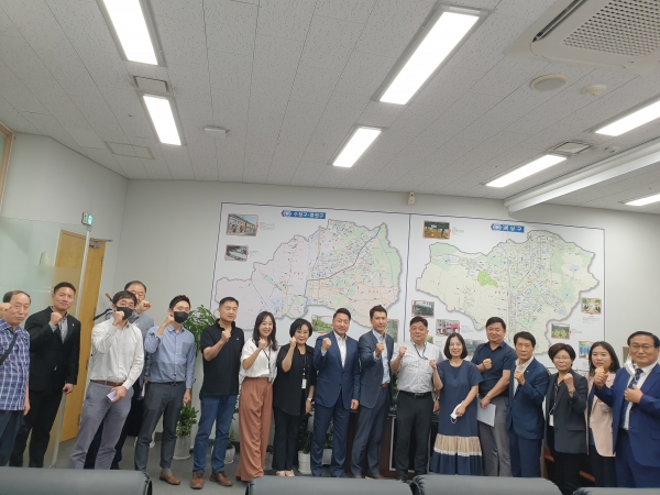 [금요저널] 성남시의회 국민의힘협의회와 분당재건축연합회 임원진들이 8월 22일 오후 2시 성남시의회 국민의힘 대표실에서 만나 재건축 문제에 대한 간담회를 가졌다.