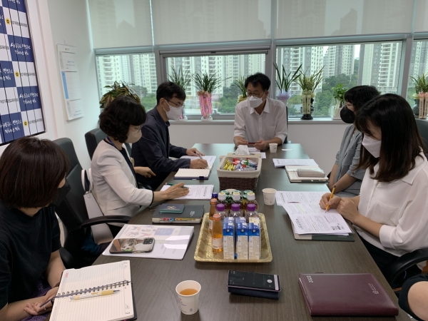 [금요저널] 경기도의회 여성가족위원회 김재균 위원장은 위원장실에서 ‘학교폭력상담사 인건비 현황’ 관련 보고를 받고 도청 김문교 청소년과장 및 강유임 경기도청소년산담복지센터장과 현안 해결을 위한 논의의 시간을 가졌다.