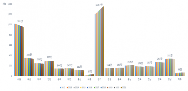 이번에 신규로 수록한 주민등록세대는 2,347만 2,895세대로 전년에 비해 1.64% 증가했으며 10년 동안 꾸준히 증가하고 있다.