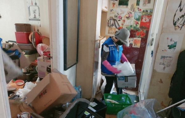 사회적협동조합 산들마을과 자원봉사자들은 집안에 쌓인 오래된 쓰레기를 치우고 찌든 때로 얼룩진 화장실과 주방을 깨끗이 닦아낸 후 소독 및 방역 작업도 실시했다.