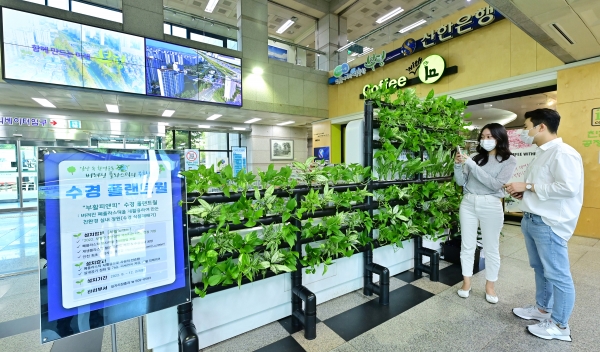 이번 ‘수경 플랜트월’은 부평지역의 청년창업기업인 ‘부활피앤피’가 제작한 것으로 재활용 플라스틱을 사용한 자원 선순환의 환경적 가치와 식물을 통한 실내공기 정화 및 미세먼지 저감 효과, 쾌적한 청사 환경 조성 등에 도움이 될 것으로 구는 기대하고 있다.
