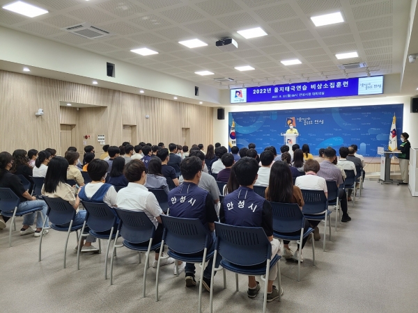[금요저널] 안성시는 22일부터 25일까지 3박 4일간 진행되는 2022년 을지연습 기간 중에 공무원 비상소집 훈련 및 행정기관 소산·이동 훈련을 실시했다.
