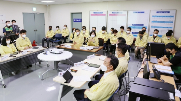 최초상황보고회의는 공무원 비상소집 훈련 응소보고회 후 전시 주요 현안과제 토의연습을 통한 관과소별 조치사항을 검토하는 순으로 진행됐다.
