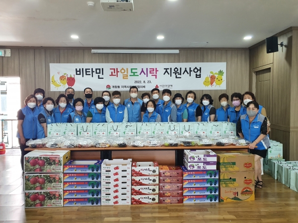 [금요저널] 인천 중구 개항동 지역사회보장협의체는 지난 23일 저소득 취약계층 130세대에 제철 과일 6종을 담은 도시락을 지원했다.