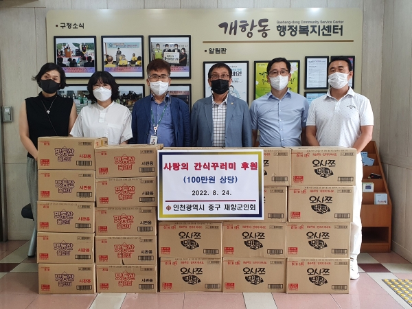 인천 중구 재향군인회, 개항동 행정복지센터에 과자 기탁