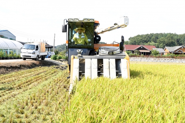 이날 수확한 벼는 즉시 건조 후 정미해 한가위를 맞아 햅쌀을 찾는 소비자에게 판매된다.
