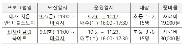 초등학교 저학년부터 고학년까지 총 30명의 어린이를 대상으로 9월부터 열린다.