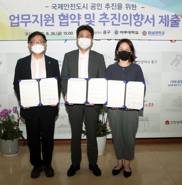 [금요저널] 인천 중구는 지난 26일 2025년 국제안전도시 공인을 목표로 국제안전도시 국제지원센터 및 한국지원센터와 업무지원 협약을 체결했다.