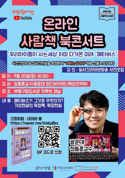 부개도서관 미디어 창작공간 나래, 온라인 사람책 북 콘서트 ‘우리 아이들이 사는 세상 메타버스’ 특강 모집