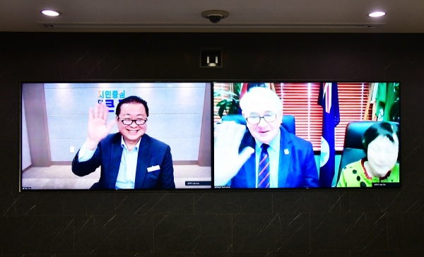 지난 29일 호주 투움바시와 진행된 첫 번째 영상회의에서 폴 안토니오 투움바시장은 김 시장의 당선을 축하했으며 김 시장은 9월에 개최되는 투움바시 꽃축제의 성공적 개최를 기원한다고 전했다.