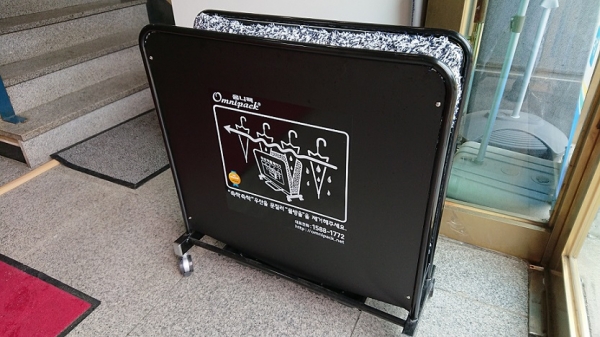 공공기관에서의 실천 과제로 1회용 비닐 커버 사용 대신 우산 빗물 제거기를 설치했다.