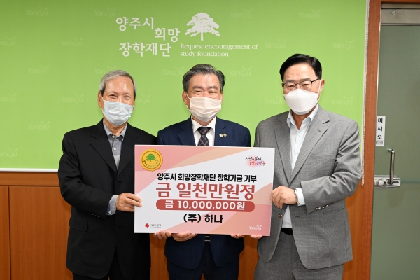 강수현 양주시장은 “코로나19 재확산과 어려운 경제 상황에도 나눔을 실천해 주신 이태문 조합장과 서재원 대표에게 진심으로 감사드린다”며 “양주시 희망장학재단이 장학금 지원뿐 아니라 학생들을 위한 다양한 교육프로그램과 인성함양 활동을 지원할 수 있도록 시에서도 지원을 아끼지 않겠다”고 말했다.