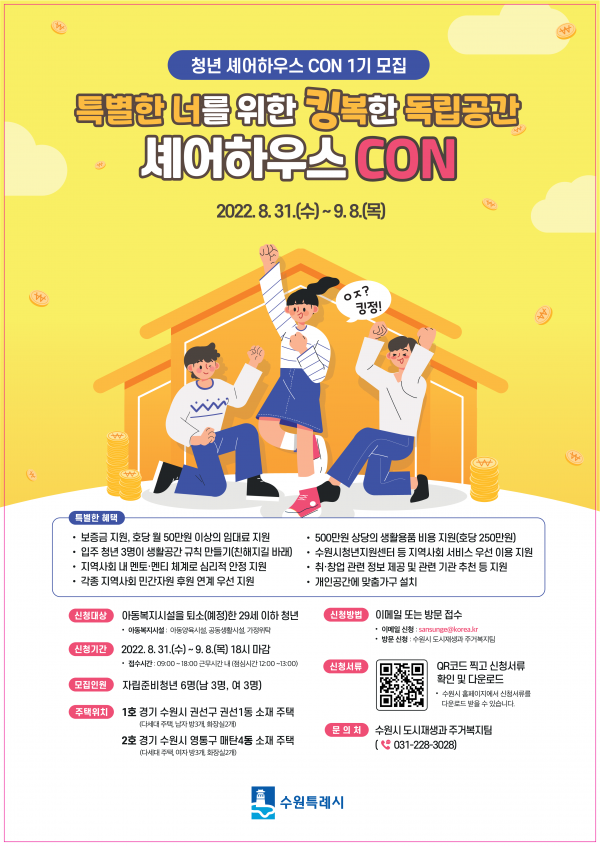 [금요저널] 수원시가 ‘자립준비청년 셰어하우스 CON’에 입주할 청년을 9월 8일까지 모집한다.