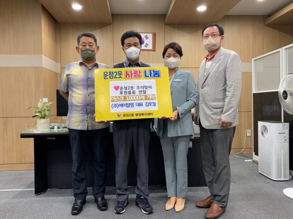 김윤정 운정2동장은 “코로나19로 생활필수품이 된 마스크를 기부해주신 ㈜에이알엠 대표님께 감사드린다”며 “개인방역에 취약한 관내 저소득층 가구에 소중히 전달하겠다”고 말했다.