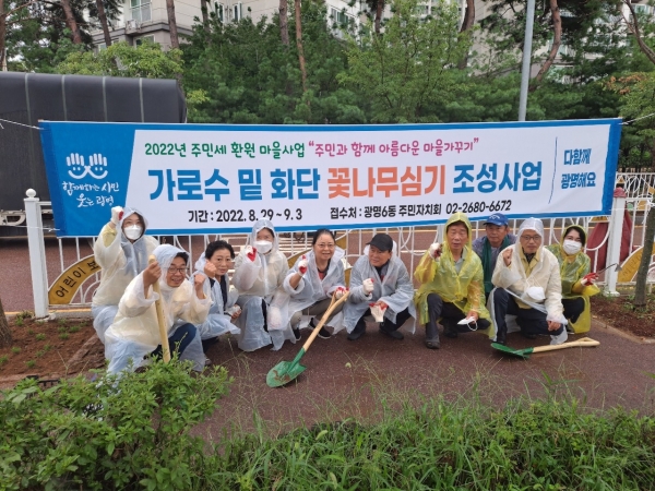 작년 제1회 광명6동 주민총회에서 주민세 마을사업으로 선정된 가로수 화단 조성은 가로수 아래가 잡초로 지저분하고 재개발 사업 등으로 분위기가 삭막한 광명6동 거리를 아름답게 바꾸고자 기획됐다.