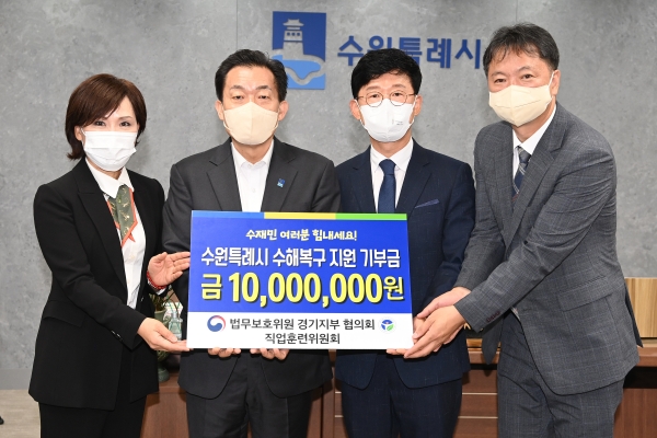 [금요저널] 법무부 법무보호위원 경기지부협의회 직업훈련위원회가 “집중호우 피해 가구의 생활 안정을 지원하는 데 사용해 달라”며 수원시에 1000만원을 기부했다.