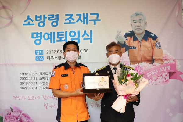 [금요저널] 파주소방서는 지난 30일 조재구 소방령의 소방생활 30년을 마무리하는 명예로운 퇴임식을 개최했다고 밝혔다.