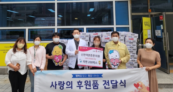 [금요저널] 신천역본튼튼의원은 추석을 앞두고 지난 8월 31일 관내 취약가구를 위한 라면 200박스를 대야동 마을자치과에 전달했다.