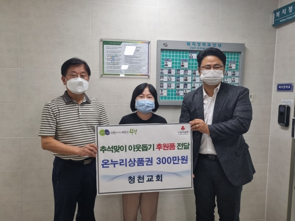 부평구, 청청교회로부터 추석맞이 온누리상품권 300만원 전달받아