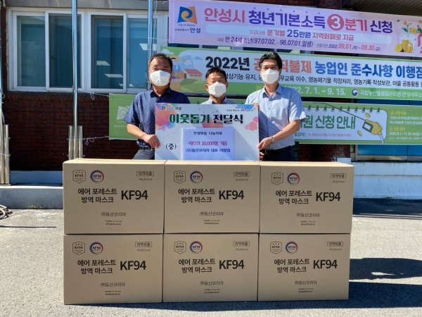 [금요저널] 안성시 원곡면 소재 동산코리아에서 추석 명절을 맞이해 어려운 이웃들에게 전달해달라며 300만원 상당의 KF94 마스크 1만장을 기탁했다.