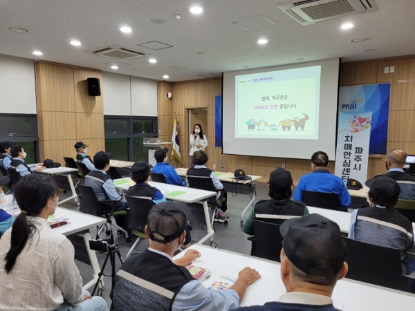 [금요저널] 파주시 운정3동은 지난 5일 운정3동 행정복지센터 문화교육실에서 운정3동 실버경찰대 23명을 대상으로 ‘노인치매예방교육’을 실시했다.