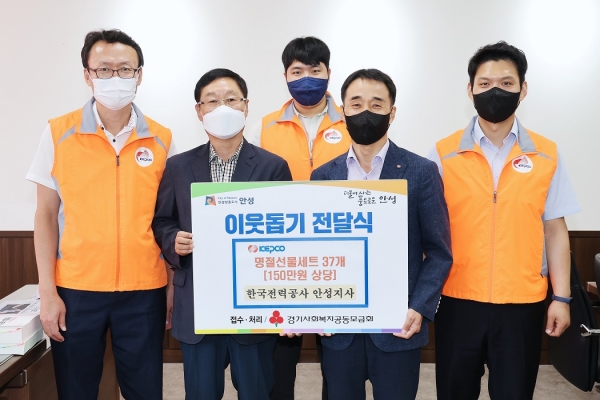 [금요저널] ㈜한국전력공사 안성지사는 명절을 맞이해 150만원 상당의 선물세트를 안성시에 전달했다.