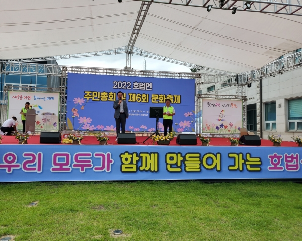 [금요저널] 지난 9월 3일 호법면행정복지센터 소통마당에서 개최된 “2022년 호법면 주민총회 및 제6회 문화축제”가 호법면민과 내외빈 600여명 이상이 참여한 가운데 성황리에 마무리됐다.