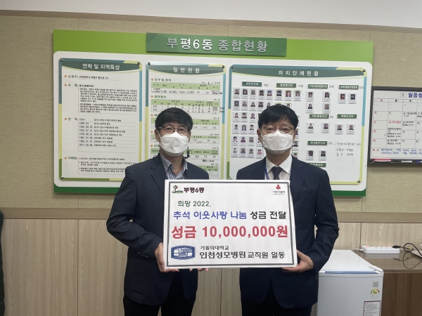 [금요저널] 부평구부평6동은 지난 5일 가톨릭대학교 인천성모병원으로부터 추석맞이 이웃사랑 성금 1천만원을 전달받았다.