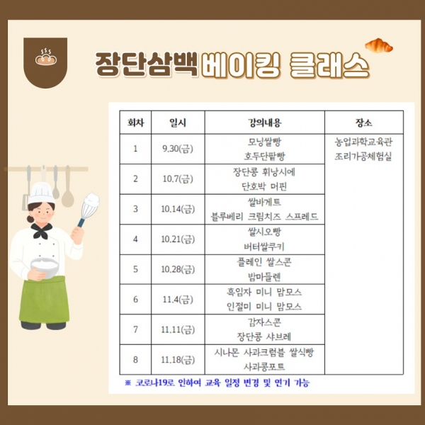 파주농산물을 이용한 장단삼백 베이킹 강좌 수강생 모집