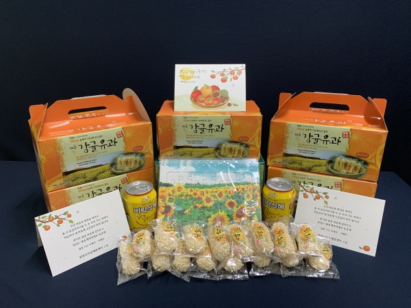 ‘함께해요, 한가WE’ 희망 꾸러미는 감귤유과세트와 식혜, 치매 예방 실버퍼즐, 추석 희망 메시지 카드로 구성됐다.