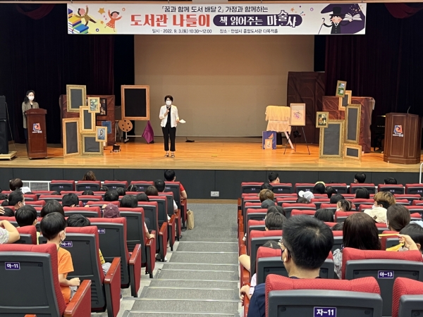 [금요저널] 안성시는 지난 3일 중앙도서관에서 ‘꿈과 함께 도서 배달’사업 참여 가족을 초청해 아동과 부모님 등 총 100여명이 함께 참여하는 독서문화프로그램 ‘도서관 나들이’를 성공적으로 개최했다.