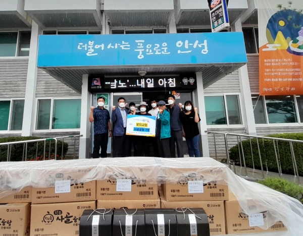[금요저널] 안성시 고삼면은 지난 9월 6일 꽃뫼교회 관계자들이 직접 면사무소를 방문해 추석을 맞아 취약계층을 돕고 싶다며 곰탕 21상자를 기부했다고 밝혔다.
