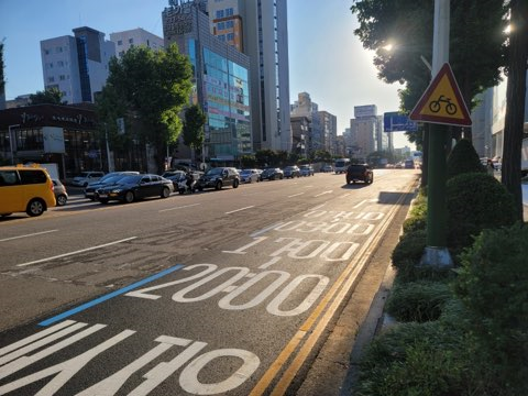 구는 기존 자전거도로를 보도 구간에 겸용으로 설치하는 방식으로 도로 양쪽에 1개 차로씩을 추가로 확보했다.