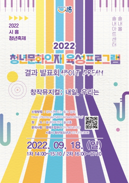 [금요저널] 시흥시는 청년예술인의 역량을 높여줄 ‘청년문화인재 육성 프로그램’을 운영해 오는 18일 결과발표회 ‘About Dream’를 솔내아트센터에서 진행한다.