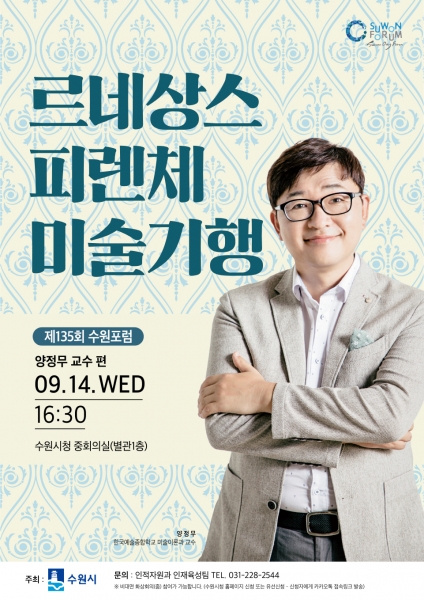 [금요저널] 수원시가 ‘르네상스 피렌체 미술 기행’을 주제로 9월 14일 오후 4시 30분 시청 중회의실에서 제135회 수원포럼을 연다.
