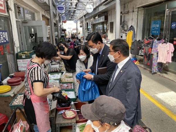 무 이용욱 의원은 직접 추석맞이 장을 보며 전통시장의 운영현황을 파악하고 시장 상인들의 애로사항을 청취했다.