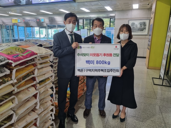 김영수 백운1구역 지역조합추진위원장은 “코로나19 장기화와 폭우로 모두 힘든 상황이지만명절을 맞아 어려운 이웃들에게 조금이나마 도움이 되길 바라는 마음으로 기부했다”고 말했다.