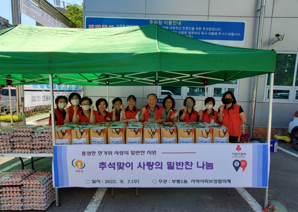 우영숙 부평1동장은 “다가오는 추석명절을 맞아 아침부터 어려운 이웃들을 위한 나눔을 준비한 지역사회보장협의체에 감사하다”며 “따뜻한 마음이 모여 지역 내 소외된 어르신들이 풍성한 한가위를 보낼 수 있길 바란다”고 말했다.