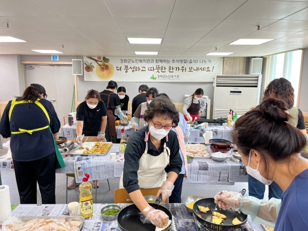 [금요저널] 강화군노인복지관은 민족 최대 고유의 명절인 추석을 맞이해 무료급식소 어르신 100여명을 대상으로 ‘추석 명절 음식나누기’를 진행했다.