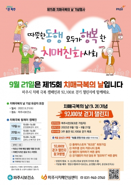 또한 치매극복의 날 기념 모바일과 연계된 9만2,100보 걷기 챌린지도 함께 진행된다.