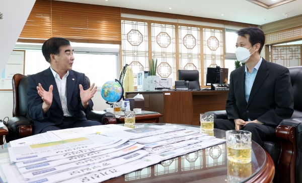 [금요저널] 염종현 경기도의회 의장은 14일 의장 집무실에서 김종보 수원남부경찰서장을 접견했다.