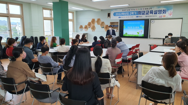 예천동부초등학교(교장 엄상일)는 9월 14일(수) 본교 예술실과 각 교실에서 2022학년도 2학기 학교교육설명회 및 학부모초청 공개수업을 실시하였다.