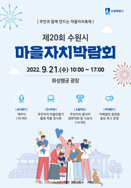 [금요저널] 수원시가 9월 21일 오전 10시부터 화성행궁 광장에서 ‘제20회 수원시 마을자치박람회’를 개최한다.