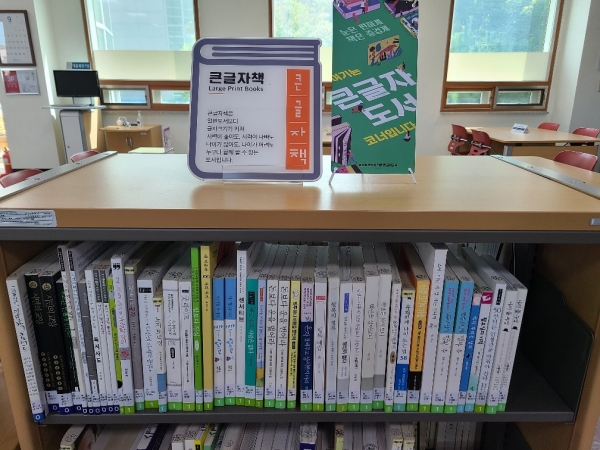 큰 글자 도서 코너는 도서관 이용을 활성화하기 위해 어르신이나 시력이 나쁜 일반인 등 독서 취약계층도 누구나 쉽고 편하게 책을 읽을 수 있도록 도서관 3층 자료실에 마련했다.