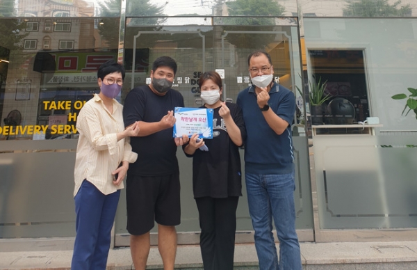 [금요저널] 오산시 남촌동이 지난 15일 궐동에 소재한 동궁찜닭의 지속적인 후원에 대해 착한날개 16호점으로 지정하고 현판을 전달했다.