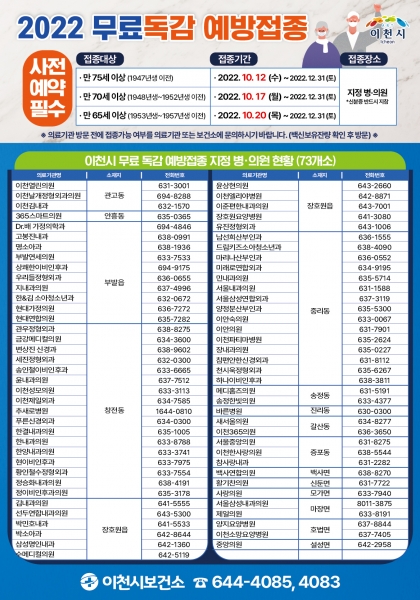 이천시, 겨울철 독감 무료 예방 접종 실시